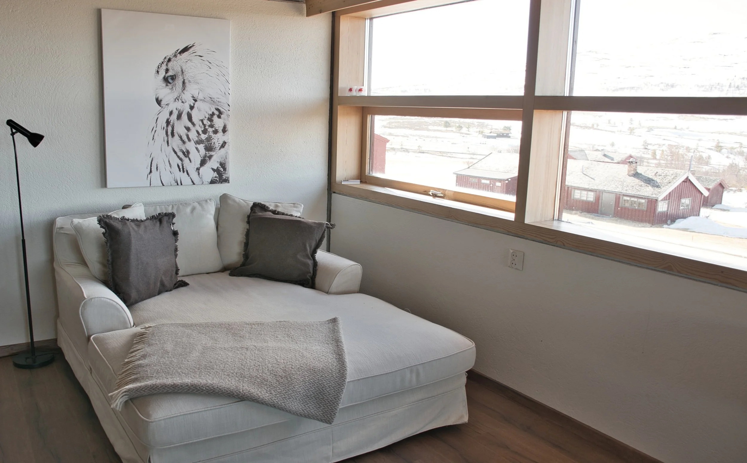 Large hotel apartment with a balcony and spectacular panoramic views of the Jetta/Blåhøe mountain areas.